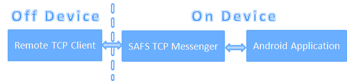 For example, Android test applications testing Android application that do not have INTERNET permissions are themselves not allowed to have INTERNET permissions. By using the SAFS TCP Messenger Service the test application can communicate with a remote test controller, receive external commands via TCP sockets, and return test results or data to the remote controller.